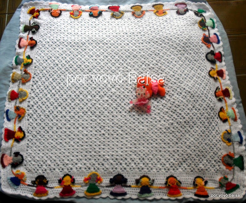 Mas que manta mais fofinha, Baísa! Amei a aplicação de bonequinhas.
