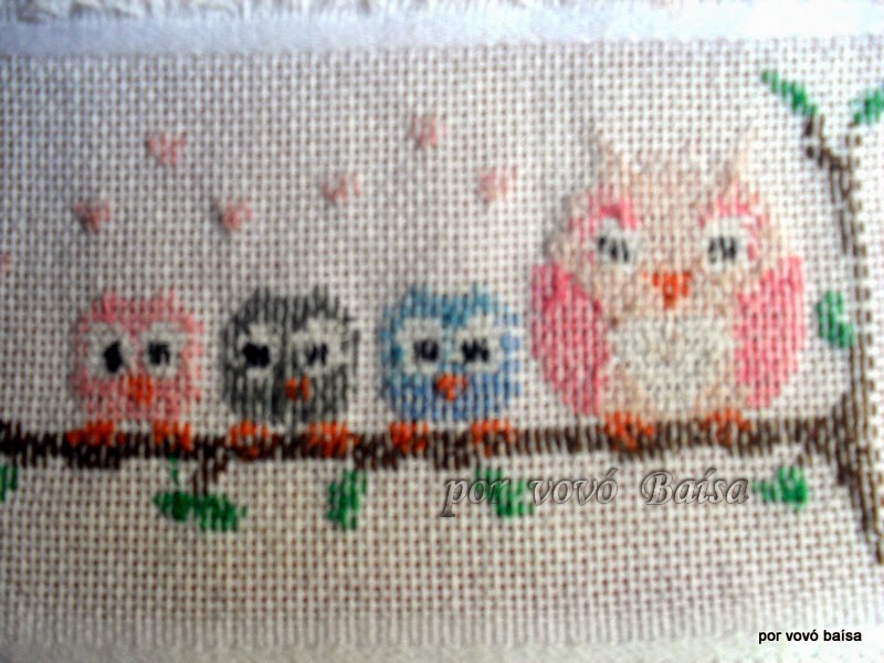 Continuo bordando Corujas... Eu amei este gráfico. Certamente, vou usa muitas vezes. Já disse no outro Post , que o esquema está no Pinterest da Sandra Coatti , neste link Corujas - Sandra Coatti
