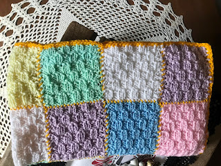 Usei sobras de fios para bebê, ag. 4 mm e quadradinhos com ponto e explicações para emenda no link abaixo: