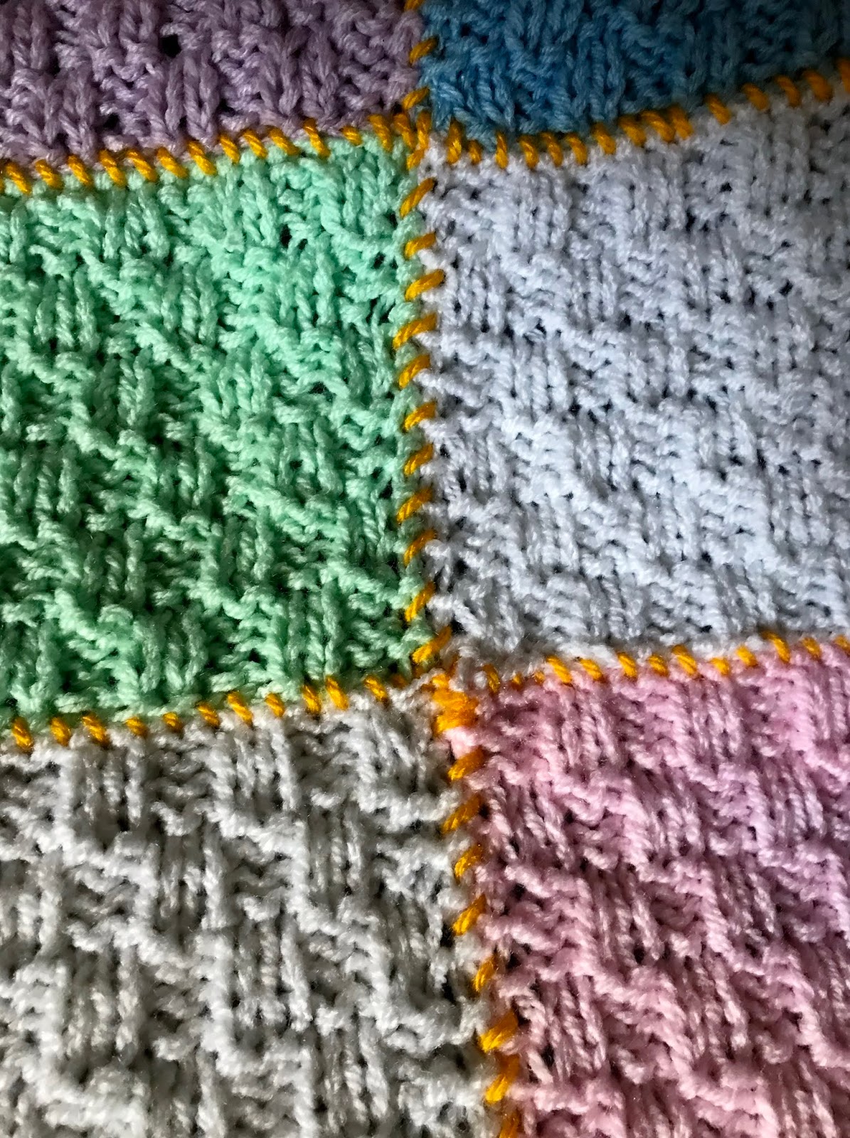 Manta com quadradinhos de tricô - coloridos