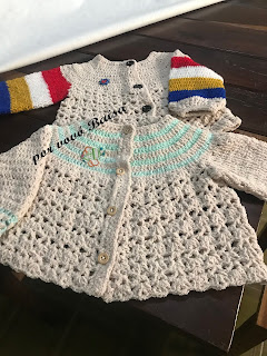 Receita recebida pelo grupo Vovó Noé Tricô e é da Ivana - ela fez com ag.2 mm e fio Anne. Eu usei esse fio, que é meio crespinho, mas beemmm macio e sobras de fio Carinho,; fiz com ag. 2,75 mm