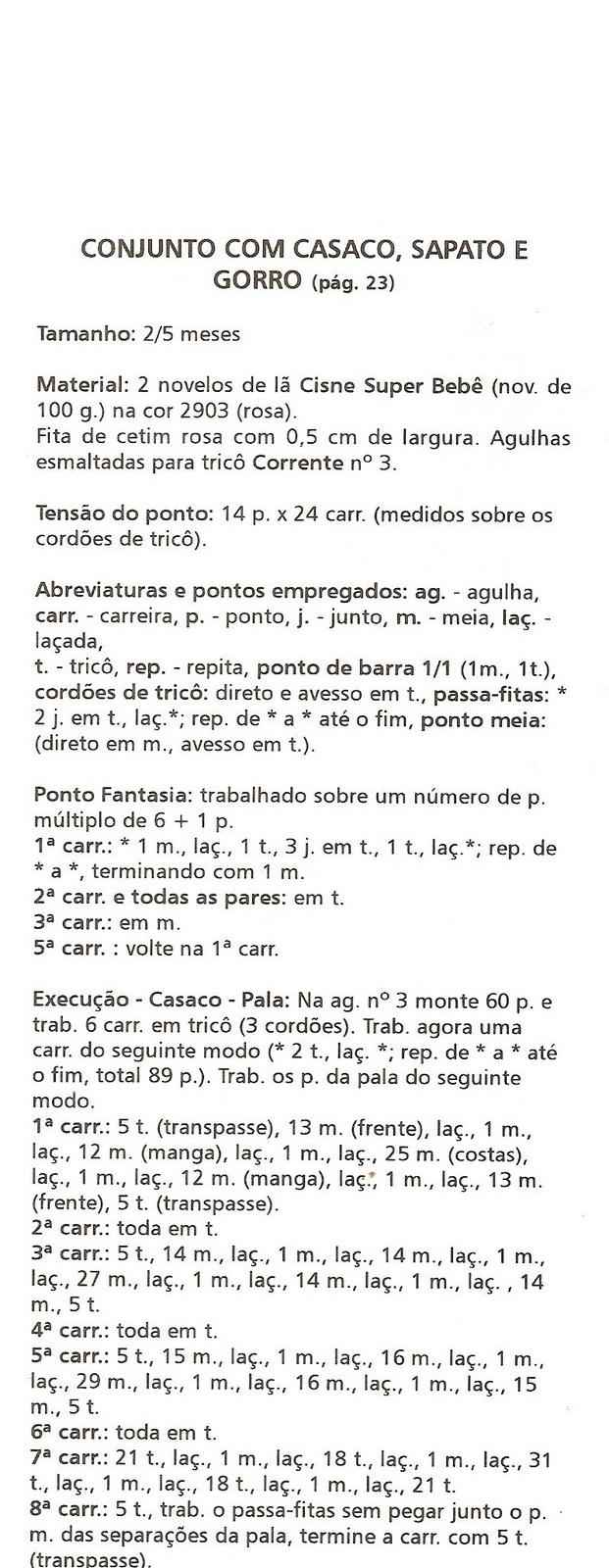 3ª carreira: 9 tricô,157 meia, 9 tricô.