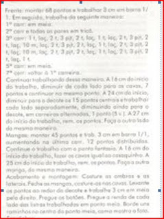 Começar com 50 pontos e ir aumentando até 184 pontos. Dividir 29 frente, 38 manga, 50 costas, 38 manga e 29 frente. Lã grossa e ag. 5 dá...