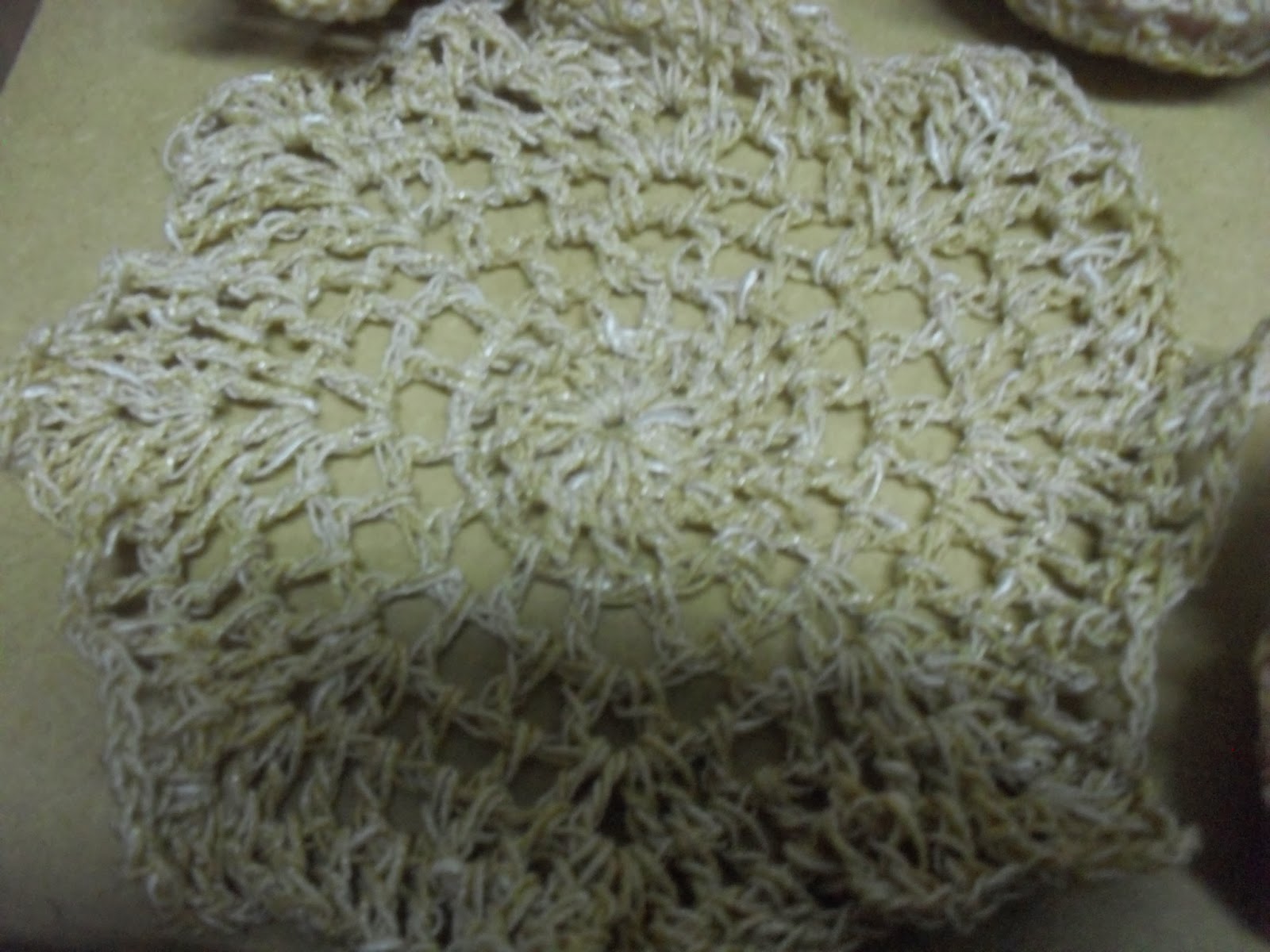 Aberta, ficou assim. Usei um fio com uns brilhos, semelhante a um barbante... Ag. 4,00 mm