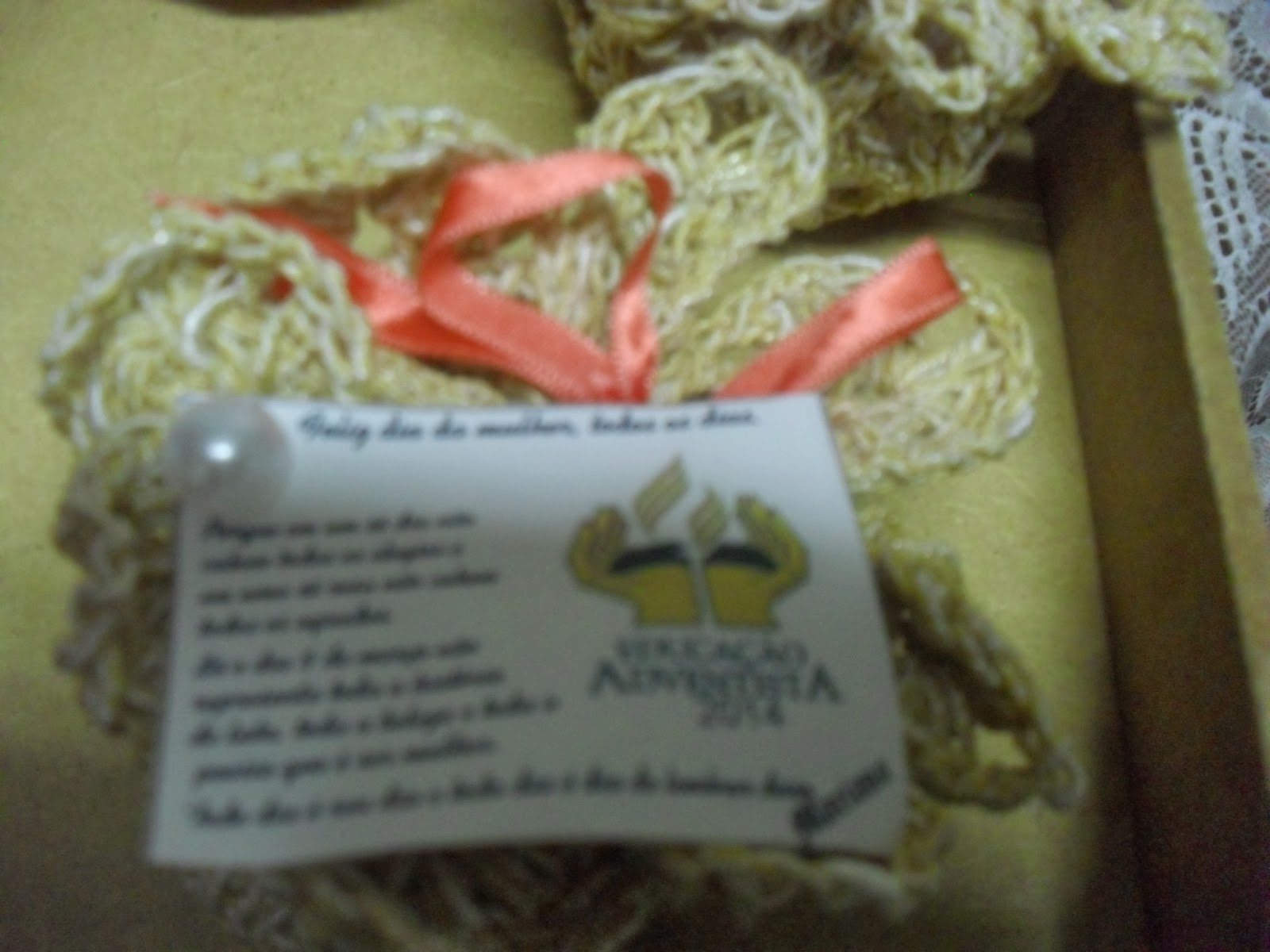 Coloquei envolvido em pael de seda, dentro de uma caixinha junto com uma florzinha!
